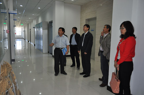 在農業科研樓,陰和俊副院長考察了我所大豆分子育種學科組和鹽漬土生態與改良學科組的部分實驗室,劉寶輝所長助理、馮獻忠研究員、梁正偉研究員分別就實驗室概況及各自研究領域的科研成果、進展做了匯報。