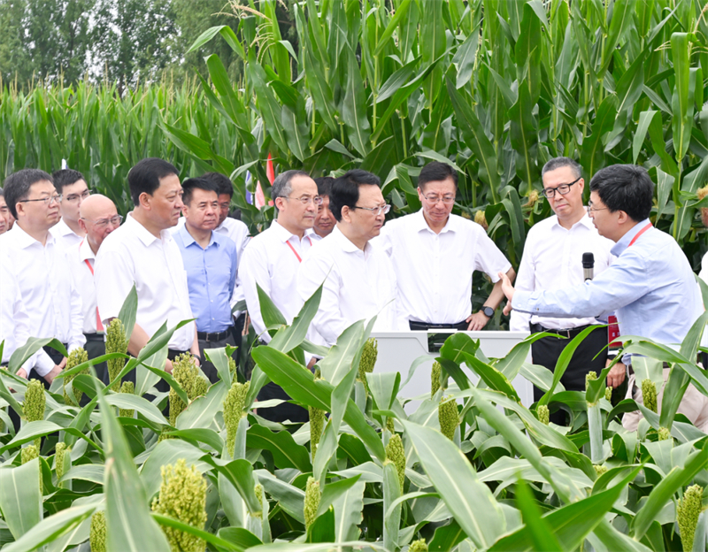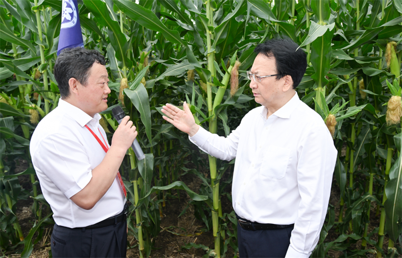 7月22日,省委書(shū)記景俊海,省委副書(shū)記、省長(zhǎng)胡玉亭與參加活動(dòng)嘉賓共同參觀黑土地保護(hù)成果實(shí)景展,實(shí)地察看中國(guó)科學(xué)院玉米新品種。鄒乃碩 攝