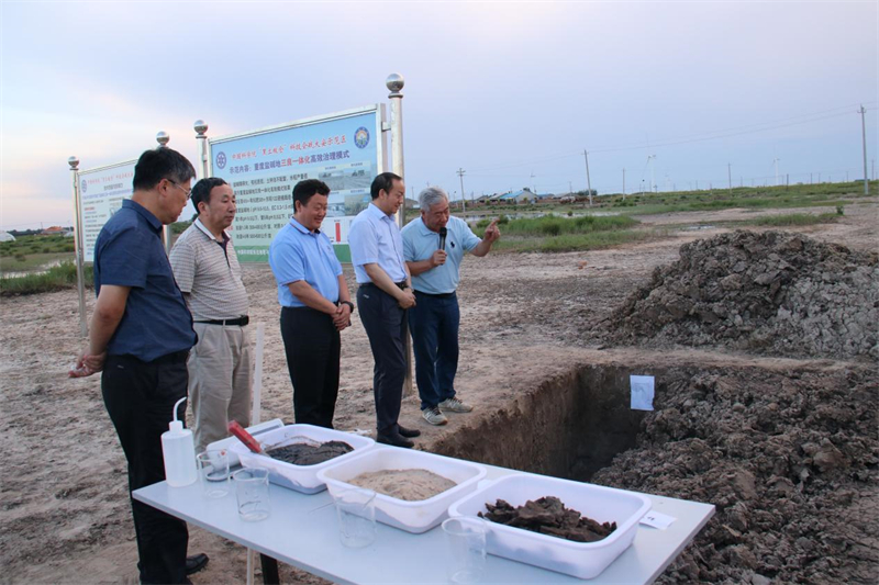 慰問調研期間,李和風一行考察了大安堿地生態試驗站及“黑土糧倉”科技會戰大安示范區示范田,大安堿地生態試驗站站長梁正偉研究員詳細介紹基本情況與工作進展。