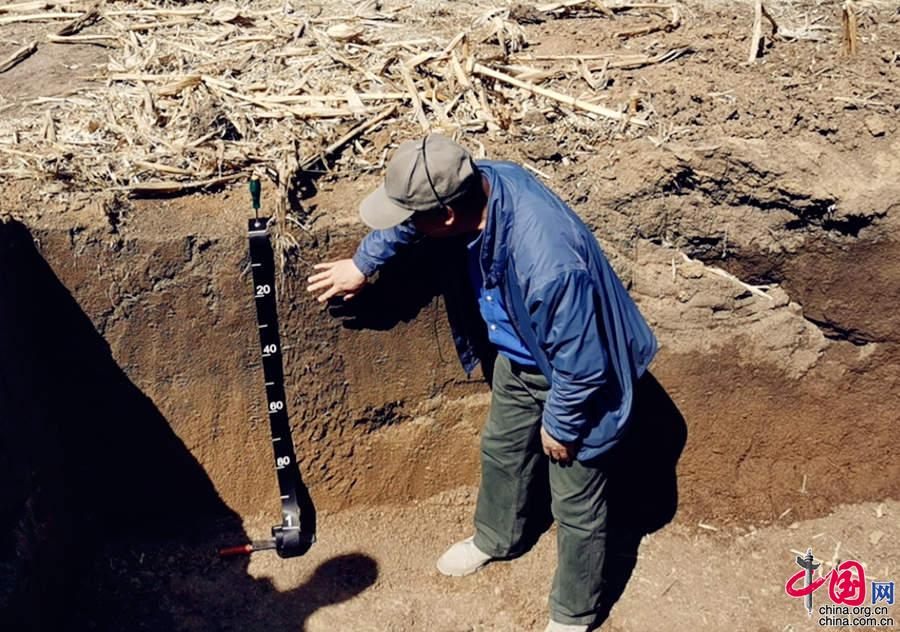 5月11日,探訪中國科學院“黑土糧倉”科技會戰(zhàn)“梨樹模式”示范區(qū)。圖為中國科學院沈陽生態(tài)所研究員張旭東在示范區(qū)基地介紹黑土地地下分層情況。王振紅攝
