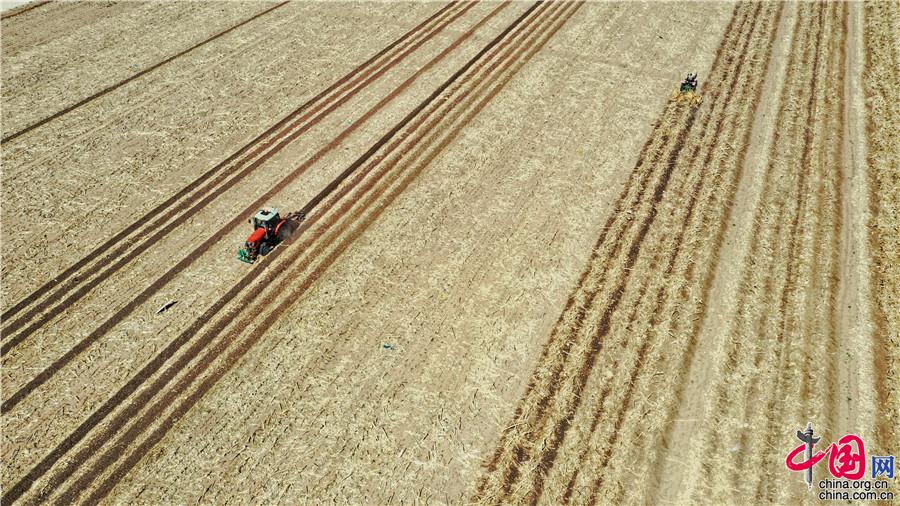 5月11日,探訪中國科學院“黑土糧倉”科技會戰(zhàn)“梨樹模式”示范區(qū),“梨樹模式”研發(fā)的專用秸桿覆蓋條耕機在萬畝示范區(qū)現(xiàn)場作業(yè)。中科院科技攝影聯(lián)盟供圖