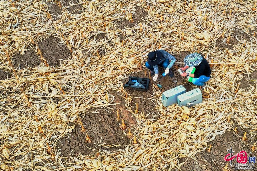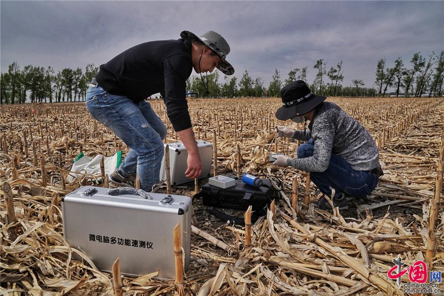 5月11日,探訪中國科學院“黑土糧倉”科技會戰(zhàn)“梨樹模式”示范區(qū)。圖為科研人員采集樣本和數(shù)據(jù)。中科院科技攝影聯(lián)盟供圖