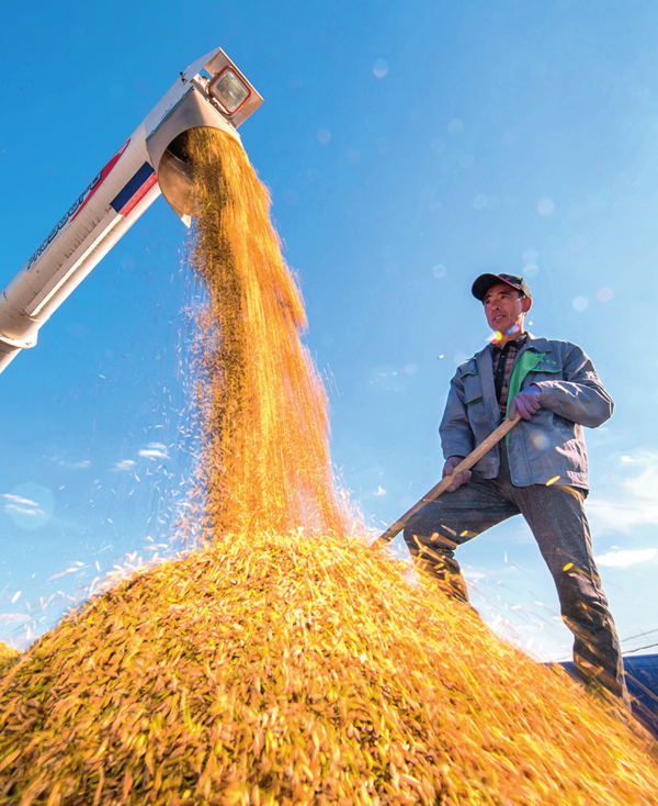 2018年9月17日,吉林省吉林市一拉溪鎮(zhèn),農(nóng)民在整理收獲的水稻 許暢攝 / 本刊