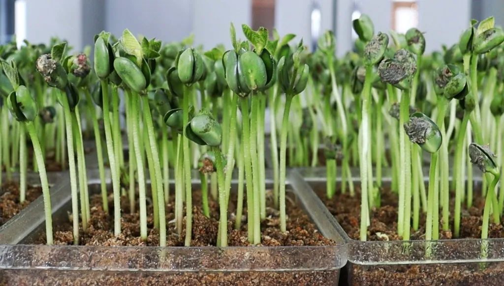 實驗室里的大豆種子發(fā)出嫩綠的芽。吳樹江 攝