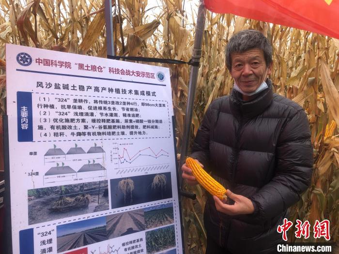 在吉林西部,中科院農(nóng)業(yè)專家展示采用新壟型耕作種出的玉米?!」选z