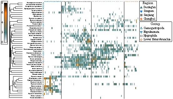 結果表明,東北濕地螺類多樣性具有明顯的生物地理格局,氣候是東北濕地螺類多樣性地理格局的主要控制因子。
