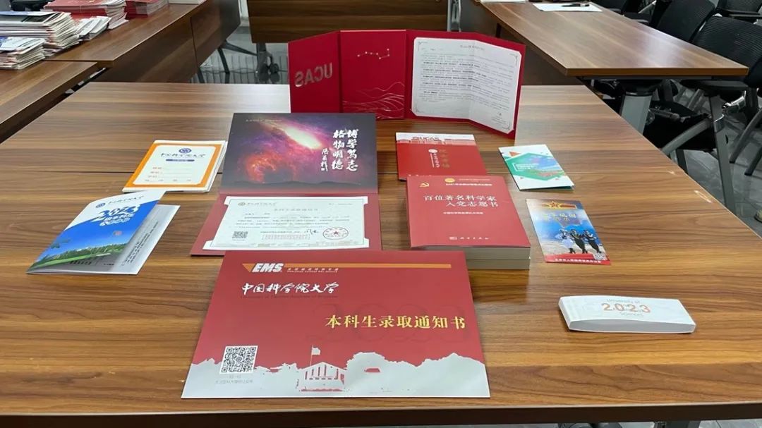 國科大錄取通知書里鑲嵌了北斗七星造型的7顆金色豆子。國科大供圖