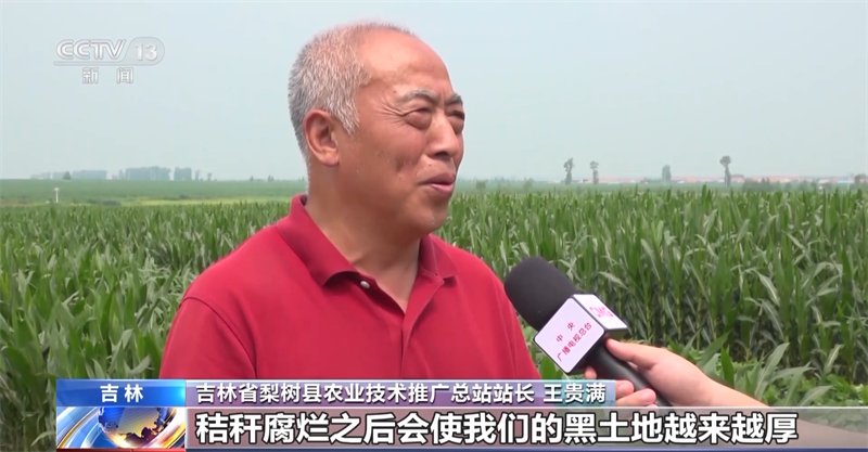 吉林省梨樹縣農業技術推廣總站站長 王貴滿:秸稈腐爛之后會使我們的黑土地越來越厚、越來越肥。秸稈全量覆蓋的條件下,有機質以每年0.1%的速度在提升,蚯蚓的數量成倍增長,多的地方能達到七八十條。