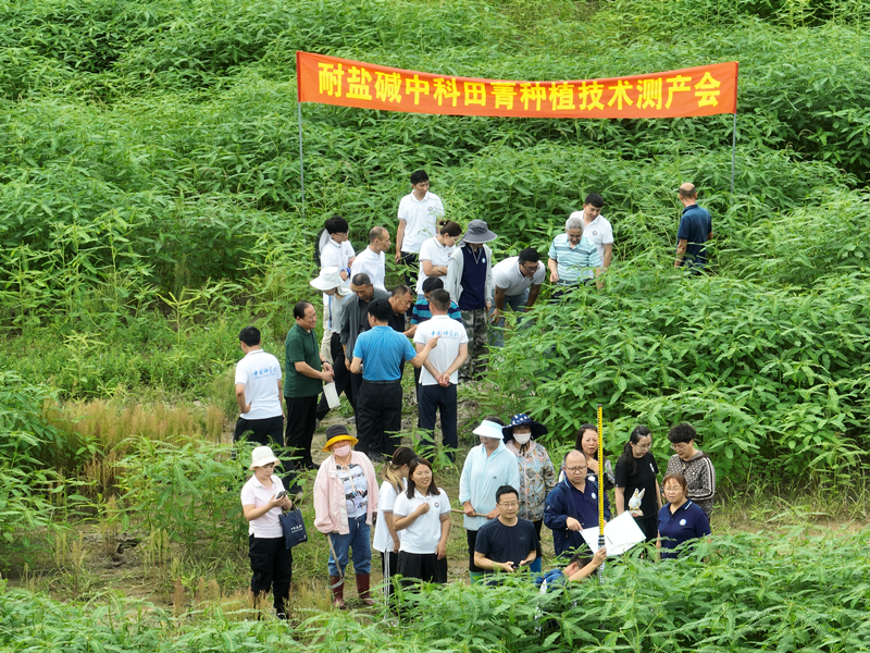 中國(guó)科學(xué)院長(zhǎng)嶺草地農(nóng)牧生態(tài)研究站鹽堿地田菁測(cè)產(chǎn)工作正在進(jìn)行中。受訪者供圖