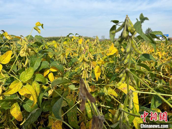 大豆種植試驗區里一片片豆莢微微黃 史軼夫 攝
