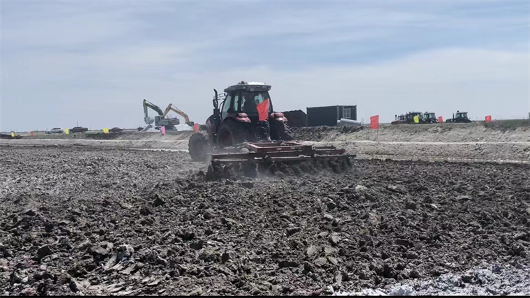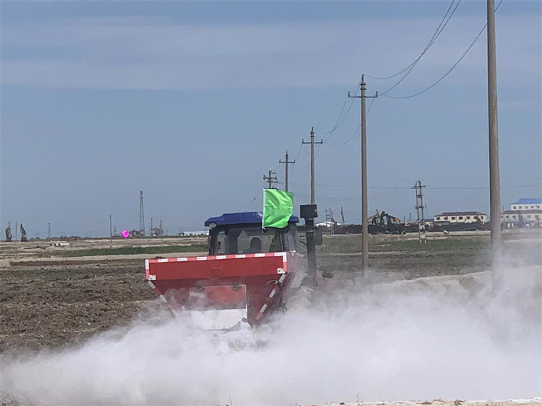 在連片的另一處鹽堿地塊,一車車磷石膏和有機肥被均勻拋撒到鹽堿地上,隨后上場的是農用旋耕機,旋耕機上場主要是把平鋪在鹽堿地上的酸性磷石膏和有機肥與耕層土壤均勻混合,起到均勻改良耕層土壤作用,同時防止改良劑被大風吹跑。 對于蘇打鹽堿地治理與綜合利用,大安站可謂是一馬當先,創(chuàng)新引領,前瞻布局,已有20余年的創(chuàng)新科研實踐經驗。站長梁正偉率領一支團隊在這片昔日寸草不生的重度鹽堿地上默默耕耘精心鉆研,提出了“良田、良種、良法”6字方針改造鹽堿地的基本理論,率先創(chuàng)建了“良田+良種+良法”三良一體化高效治理與綜合利用技術模式。