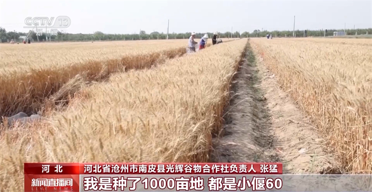 河北省滄州市南皮縣光輝谷物合作社負責人 張猛:我種了1000畝地,都是“小偃60”,這個品種抗鹽堿、抗旱,抗倒伏,產量挺高,畝產達到1000多斤沒問題。