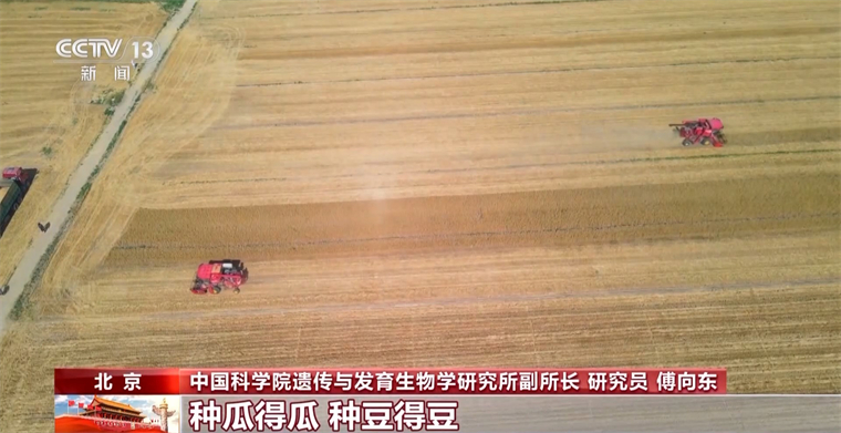 中國科學院遺傳與發育生物學研究所副所長 研究員 傅向東:種瓜得瓜,種豆得豆,有好的品種,才有好的收獲。我們的耕地只有18億畝,我們人口有14億,人多地少,這是我們的國情。我們要在有限土地上產出更高的糧,一直是我們育種的一個目標,但不是唯一的目標。隨著我們生活水平條件好了以后,我們不但要吃得飽,而且吃得好,所以我們的育種工作也需要不斷推進。