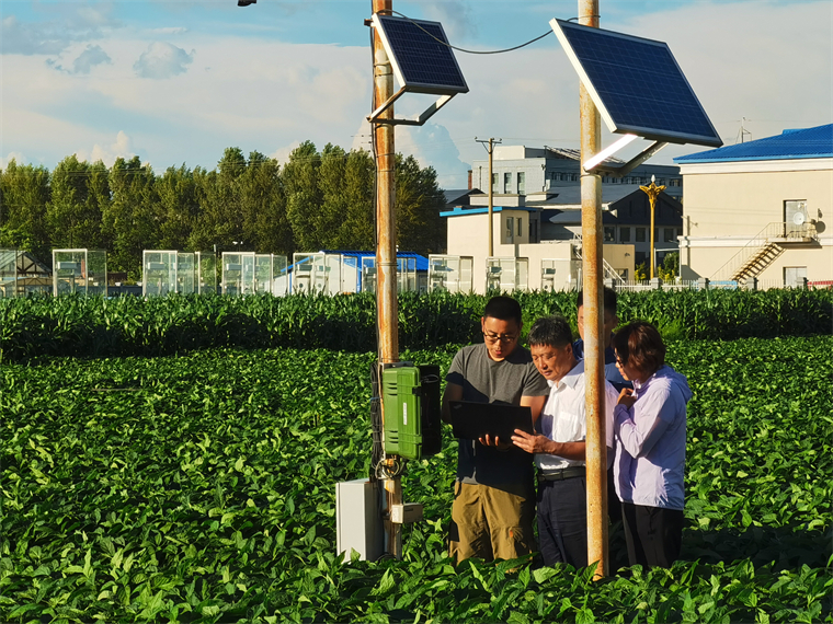 韓曉增(左二)帶領團隊田間觀測數據