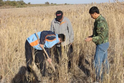 劉興土、楊富億、李秀軍進行蘆葦移栽