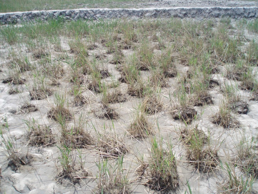 試驗證明,在光禿禿的鹽堿地上,蘆葦根狀莖移植、葦墩移植和簡單的松耙促繁是生長捷徑。就這樣,一叢叢蘆葦在光灘上扎牢了根,眼瞅著荒地里的綠色連片而起。