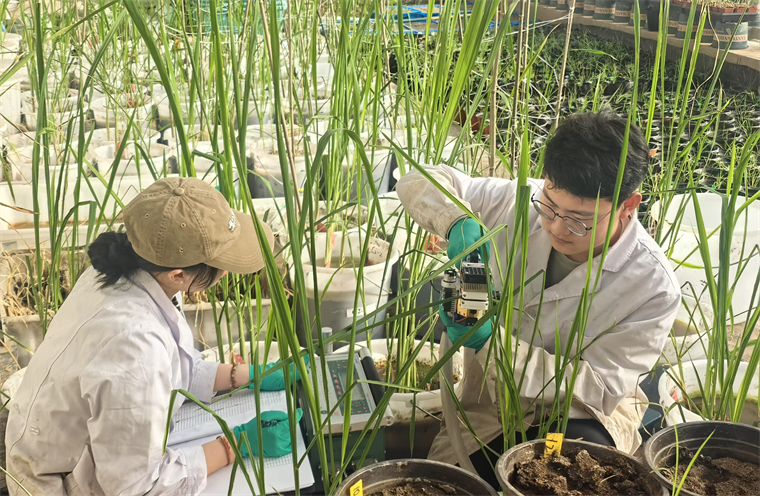 幾十盆苗,每盆隨機測量3個葉片,每片需要5分鐘;上午9-11點間是有效測量時間段,測不完就要等下午2點再開始……這項工作既要有體力,又要有耐心。