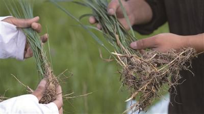 “這是羊草地下橫走的根莖,根莖最頂端的芽非常堅硬,橫著向前生長,每生長一段根莖就會有一個芽點,芽點上就會長出新的羊草苗,然后繼續往前走,再長出來,可以長到幾米長,這就是羊草的無性繁殖。”中國科學院東北地理與農業生態研究所研究員馬紅媛手中拿著一束羊草樣本向筆者介紹,“羊草的生命力非常頑強,地下根莖非常茂盛,可以起到快速擴繁防風固沙作用?!?/p>