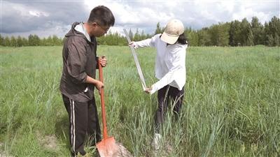 科研人員在鹽堿生境中篩選優質野生羊草種質資源。