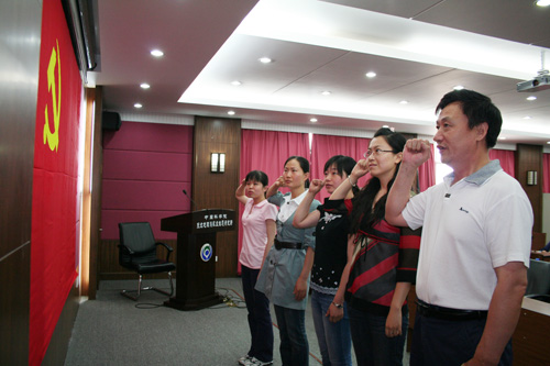 7月1日,有4名新黨員面對黨旗莊嚴宣誓,老黨員也在重溫黨的誓詞中受到了教育。