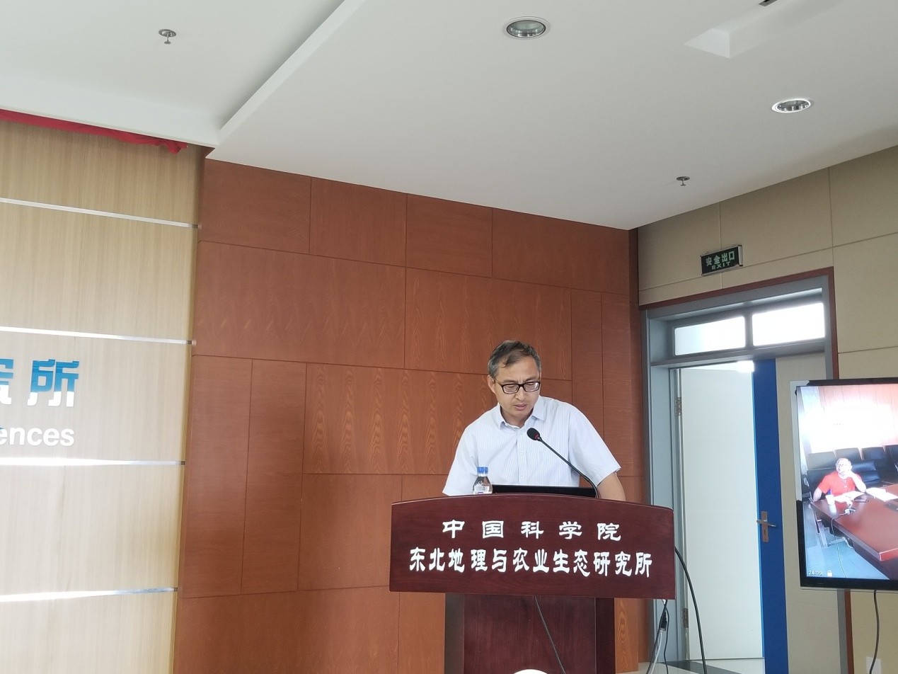 蘇陽(yáng)在主持發(fā)言中指出,在推動(dòng)實(shí)施創(chuàng)新驅(qū)動(dòng)發(fā)展戰(zhàn)略的征程上,我們要在習(xí)近平新時(shí)代中國(guó)特色社會(huì)主義思想指引下,繼續(xù)面向東北區(qū)域發(fā)展重大需求,遵循“三個(gè)面向”、“四個(gè)率先”辦院方針,扎實(shí)推進(jìn)“一三五”規(guī)劃實(shí)施,為建設(shè)國(guó)內(nèi)一流、國(guó)際上有重要影響、具有鮮明學(xué)科與區(qū)域特色不可替代的地學(xué)與農(nóng)學(xué)交融的綜合性研究所砥礪奮進(jìn)。
