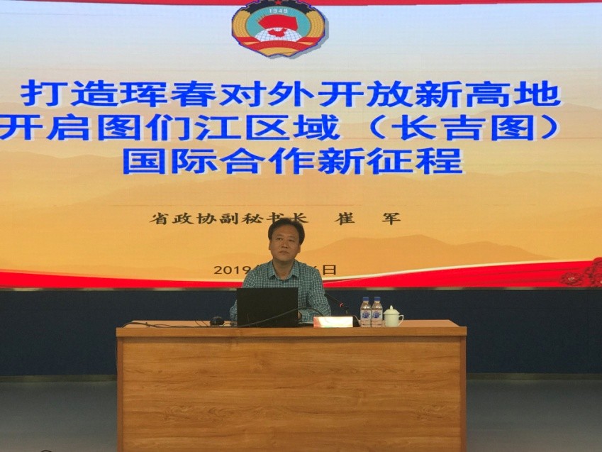 崔軍從新時(shí)代、新任務(wù)采取新舉措,加快中國(guó)圖們江區(qū)域(琿春)國(guó)際合作示范區(qū)建設(shè);順應(yīng)東北亞地緣形勢(shì)新變化,把長(zhǎng)吉圖開(kāi)發(fā)開(kāi)放先導(dǎo)區(qū)建設(shè)成為東北對(duì)外開(kāi)放示范區(qū);打造琿春對(duì)外開(kāi)放新高地,開(kāi)啟中國(guó)參與圖們江區(qū)域國(guó)際合作新征程等三個(gè)方面;系統(tǒng)闡述了如何打造琿春對(duì)外開(kāi)放新高地開(kāi)啟圖們江區(qū)域(長(zhǎng)吉圖)國(guó)際合作新征程。崔軍指出,當(dāng)下我們?cè)诙噙吙蚣苤畠?nèi),雙邊關(guān)系正處于歷史最好時(shí)期,我們要貫徹落實(shí)習(xí)近平總書(shū)記視察吉林和東北座談會(huì)的總體要求,加快推進(jìn)長(zhǎng)吉圖先導(dǎo)區(qū)建設(shè);我們要積極創(chuàng)造條件,在多邊框架之內(nèi)實(shí)現(xiàn)雙邊突破,以小區(qū)域合作帶動(dòng)大區(qū)域合作,切實(shí)維護(hù)國(guó)家邊境安全和長(zhǎng)治久安及民生發(fā)展。