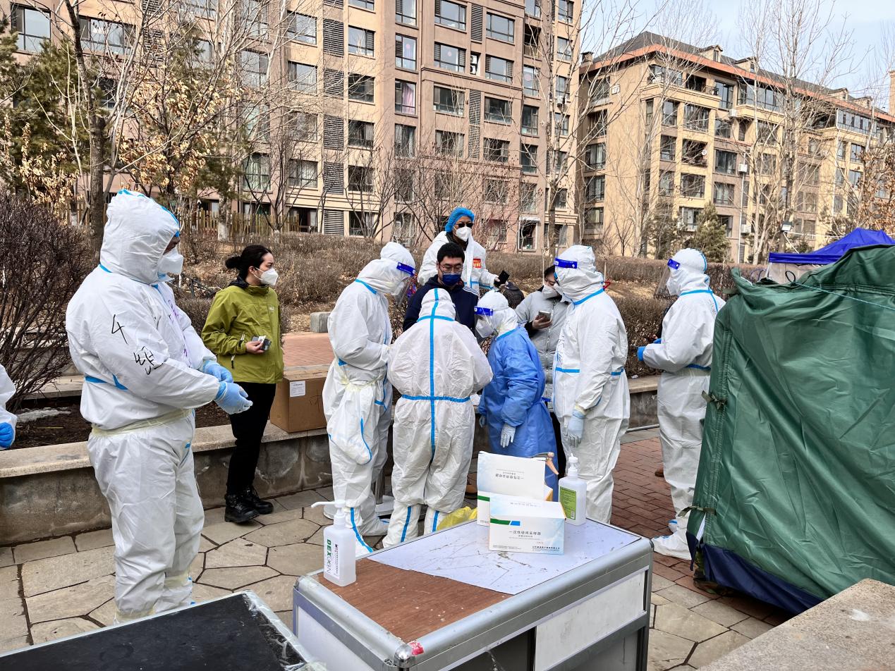 征集志愿者時,東北地理所黨委副書記、紀委書記王曉慧主動請纓、積極參戰。今天,她以一名普通黨員的身份奔赴疫情防控“最前沿”,帶領兩位年輕黨員方婷婷、吳志偉身穿白色“戰衣”,下沉凈月中信社區開展疫情防控工作。大家克服困難,并肩作戰,堅決服從社區防疫工作統一安排,積極協助社區開展現場及入戶掃描吉祥碼、核酸檢測樣品收集、核酸檢測登記等工作。通過掃碼、測溫、登記等細微的志愿服務工作,他們用自己的實際行動詮釋一名共產黨員的初心和使命,也體會到一線醫務和社區工作者的辛苦付出,共同構筑起疫情防控長效防線,全天累計協助社區為1000余人次檢測核酸。