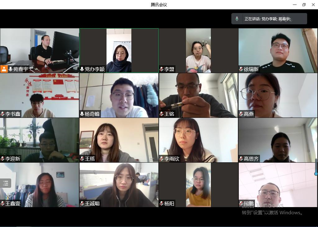 3月30日,東北地理所研究生黨支部(黨總支)換屆工作籌備組召開視頻會議,專題研討在疫情防控期間,如何充分發揮研究生黨總支(黨支部)的戰斗堡壘作用和黨員的先鋒模范作用。籌備組全體成員及黨委辦公室主任李穎參加會議,會議由研究生黨總支書記苑春宇主持。