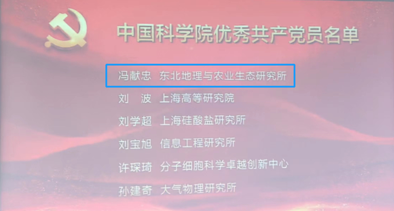喜報(bào)∣東北地理所馮獻(xiàn)忠研究員榮獲中國(guó)科學(xué)院優(yōu)秀共產(chǎn)黨員稱號(hào) 黑土第一黨支部榮獲中國(guó)科學(xué)院先進(jìn)基層黨組織稱號(hào)