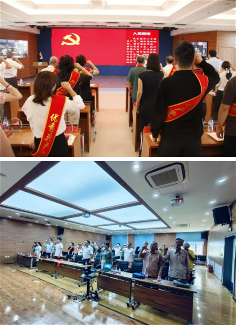 在重溫入黨誓詞環(huán)節(jié),紀委書記項尚作為領誓人,與全體黨員舉起右拳,面向莊嚴鮮紅的黨旗,重溫入黨誓詞,這是初心使命的再宣示,是接續(xù)奮斗的再出發(fā)。