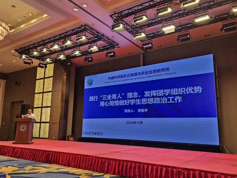 東北地理所團委書記苑春宇以《踐行“三全育人”理念,發揮團學組織優勢,用心用情做好學生思想政治工作》為題,交流了我所團委發揮自身優勢,融入學生思想政治工作的特色做法。