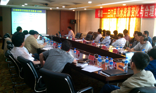 為了迎接中科院水項(xiàng)目群年底終期考核,加強(qiáng)交流合作和創(chuàng)新性成果產(chǎn)出,由中國科學(xué)院水資源研究中心、中國科學(xué)院東北地理與農(nóng)業(yè)生態(tài)所聯(lián)合組織主辦的中國科學(xué)院知識創(chuàng)新工程方向性項(xiàng)目群“松嫩-三江平原水資源變化與合理調(diào)配研究”中期評估暨2011年學(xué)術(shù)研討會于6月4-5日在長春華苑賓館順利召開。項(xiàng)目群專家中國科學(xué)院水資源研究中心主任夏軍研究員、東北地理與農(nóng)業(yè)生態(tài)所張柏研究員、沈陽生態(tài)所金昌杰研究員、地質(zhì)與地球物理所龐忠和研究員,來自于松遼委、吉林省農(nóng)委、黑龍江省環(huán)保廳、黑龍江省發(fā)改委、吉林大學(xué)、東北地理與農(nóng)業(yè)生態(tài)研究所的指導(dǎo)專家,項(xiàng)目及各課題負(fù)責(zé)人、科研骨干共50余人參加了會議。