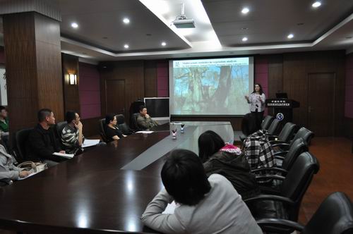 5月9日上午,Middleton研究員作了題為Multivariate statistics in vegetation analysis的報告,通過對方差分析和多元統(tǒng)計分析方法進行介紹和對比入手,具體介紹了不同統(tǒng)計方法進行數(shù)據(jù)分析的原理與過程,指出多元統(tǒng)計分析方法與其他分析方法相比較在解釋物種群落和環(huán)境因素相互關(guān)系等復雜的生態(tài)學問題時的優(yōu)勢。同時,Middleton研究員對目前關(guān)于多元統(tǒng)計分析方法較為流行的幾種生態(tài)學統(tǒng)計軟件的優(yōu)缺點和使用方法進行了介紹。下午,Middleton研究員作了題為Using R statistical software in vegetation analysis 的報告,深入細致的介紹了R軟件的工作原理以及其在解決復雜生態(tài)學問題數(shù)據(jù)分析時的作用。同時,結(jié)合目前已經(jīng)合作開展的三江平原種子庫研究案例,具體介紹了R統(tǒng)計學軟件的使用方法。