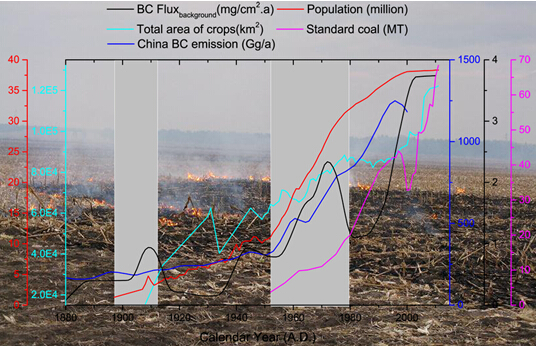 我所濕地生態系統管理學科組選擇三江平原典型的泥炭剖面作為研究對象,結合210Pb測年技術,對三江平原近150年來黑碳的沉積通量的變化趨勢及其可能因素進行分析。結果表明,近150年來三江平原的黑碳沉積通量處于逐漸增加的趨勢。而在20世紀初和20世紀60年代,因為三江平原大規模的開荒活動,使得這兩個時期的黑碳的沉積通量出現短暫的峰值。通過廣義相加模型分析發現,20世紀80年代以后,由于人類活動的增強,人為因素產生的黑碳逐步成為了三江平原地區黑碳的主要來源。