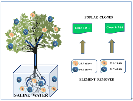 除了針對常規污染物的凈化以外,水環境污染與防治學科組祝惠副研究員與美國農業部Gary Banuelos教授合作,篩選了兩種耐鹽能力較強的的克隆楊樹品種,并通過實驗證明他們對含鹽廢水中高濃度硒(Se)、硼(B)等元素具有較強的耐受和凈化能力,為同時含有鹽分和高濃度Se、B等元素的污染水體凈化提供了技術支撐(Zhu and Banuelos, Journal of Hazardous Materials, 2017)。