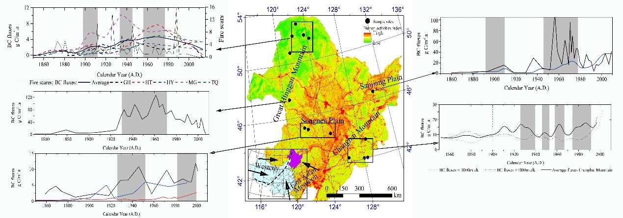 東北地理所濕地演化與生態(tài)功能學(xué)科組于2012年開始逐步開展評(píng)估黑碳對濕地生態(tài)系統(tǒng)碳循環(huán)影響的相關(guān)工作,目前已完成對東北地區(qū)典型濕地分布區(qū)中黑碳儲(chǔ)量以及近百年來黑碳沉積通量的重建工作。研究結(jié)果表明,濕地中黑碳含量約占有機(jī)碳含量的5.4%,并以此推斷全球北方泥炭地中黑碳儲(chǔ)量約為290億噸,相當(dāng)于1100億噸二氧化碳長期穩(wěn)定地儲(chǔ)存在泥炭地土壤碳庫中。濕地生態(tài)系統(tǒng)黑碳沉積過程不僅受到區(qū)域經(jīng)濟(jì)發(fā)展的影響,同時(shí)也與各區(qū)域人類活動(dòng)方式有著密切的關(guān)系。20世紀(jì)80年代之前,三江平原的農(nóng)業(yè)資源開發(fā)和大興安嶺的林業(yè)資源開發(fā)均造成了黑碳沉積通量在當(dāng)?shù)貪竦厣鷳B(tài)系統(tǒng)中明顯增加,其中黑碳沉積通量在部分時(shí)期超過了100g C/m2.a。隨著自然資源開發(fā)活動(dòng)逐漸受到環(huán)境友好政策的限制,各區(qū)域人為活動(dòng)對黑碳沉積通量影響的差異性逐漸降低,東北地區(qū)典型濕地的黑碳沉積通量主要受到區(qū)域經(jīng)濟(jì)發(fā)展和工業(yè)化程度的影響。20世紀(jì)80年代以后,東北東部地區(qū)的濕地黑碳沉積通量逐漸增加并明顯高于西部地區(qū)。通過一系列研究,重建了東北地區(qū)沼澤濕地黑碳累積歷史,闡明了黑碳累積的空間分布差異,探討了黑碳累積的影響因素,增進(jìn)了對東北地區(qū)沼澤濕地固碳潛力的理解。在此基礎(chǔ)上,首次估算了全球濕地穩(wěn)定性碳(黑碳)儲(chǔ)存量,其明顯高于其它陸地生態(tài)系統(tǒng),進(jìn)一步論證了濕地生態(tài)系統(tǒng)的生態(tài)重要性。上述系統(tǒng)研究在濕地黑碳研究方面位于國際前列。