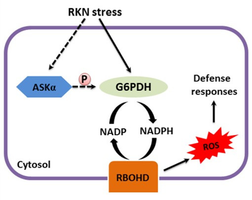 圖3 G6PDH通過ROS信號參與調(diào)控植物對根結(jié)線蟲的防御反應