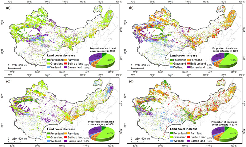 圖1990-2010年中國(guó)干旱-半干旱區(qū)土地覆被變化情況