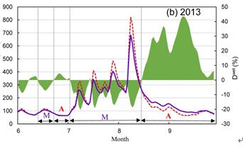 圖1典型枯水年(a)和豐水年(b)濕地對(duì)徑流的調(diào)節(jié)作用