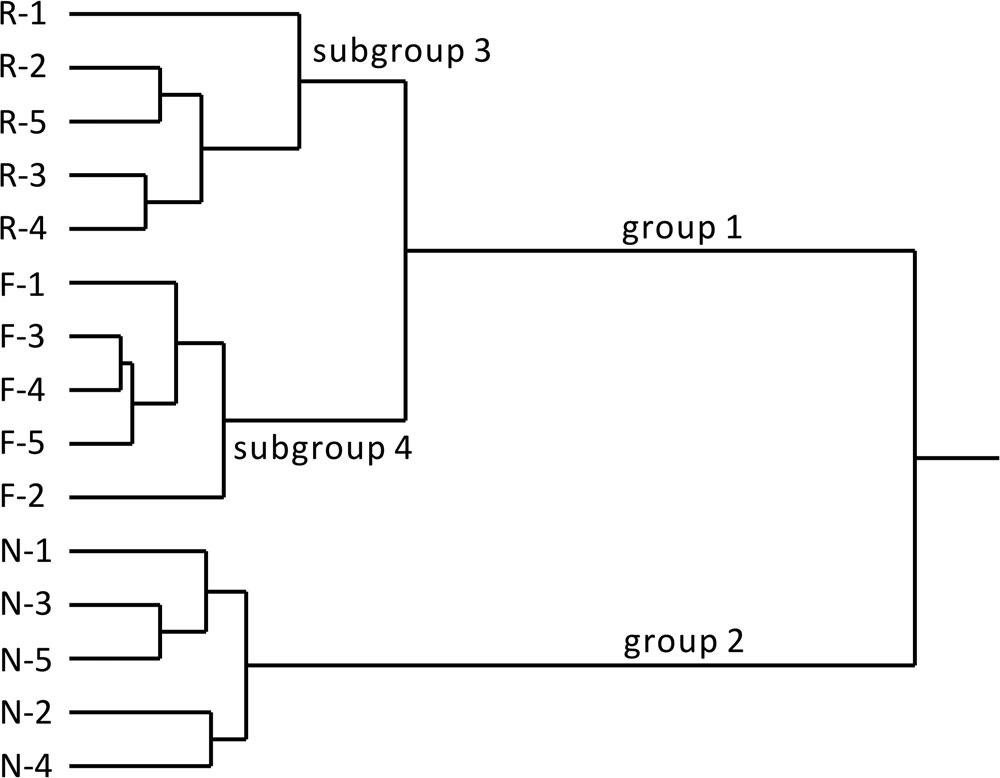 圖4 不同樣地類型(天然濕地、恢復(fù)濕地、開墾農(nóng)田)土壤元素組成聚類分析