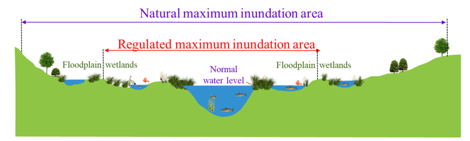 圖3 自然和水庫(kù)大壩建設(shè)情境下河濱濕地淹沒面積變化的概念圖