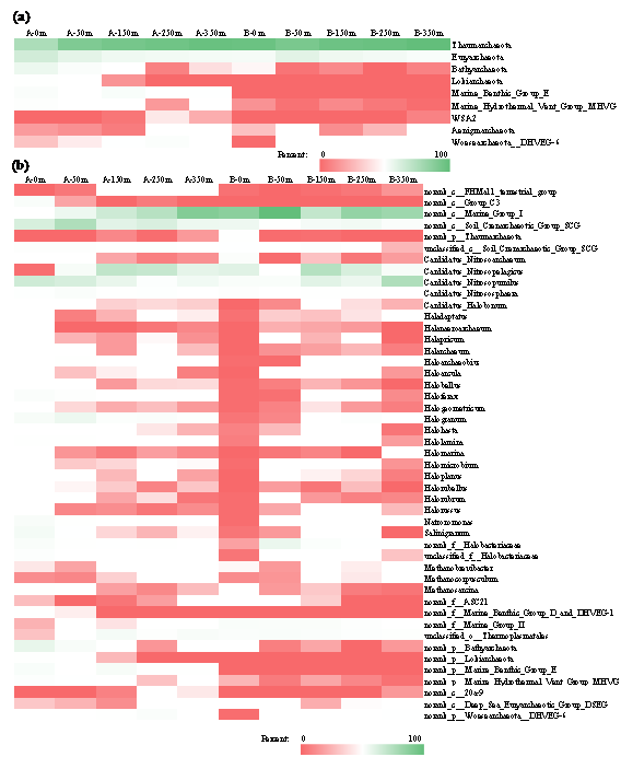 圖1 黃河三角洲河口濕地不同區域古菌群落熱圖