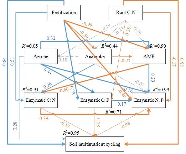 圖2. 施肥和根茬輸入碳氮比對土壤微生物量、酶化學計量比和養(yǎng)分循環(huán)的影響