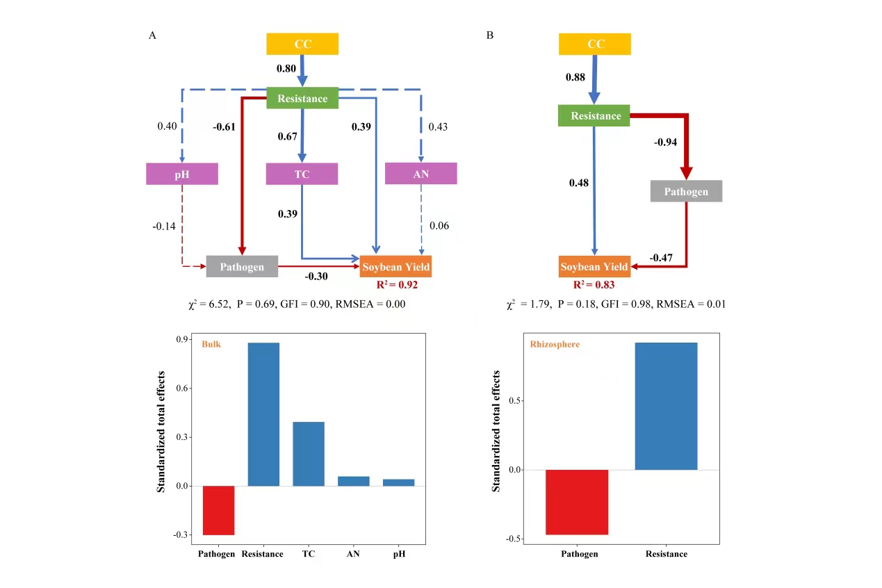 圖2土壤微生物抗性指數對土壤養分、潛在植物病原菌豐度和大豆產量的影響