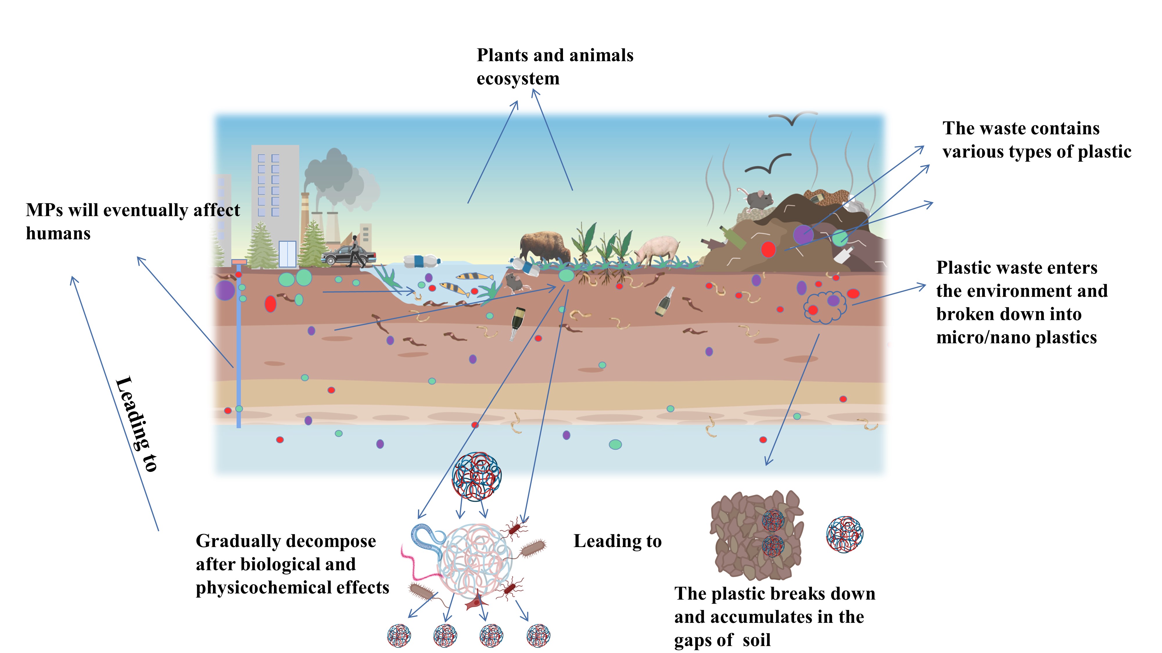 塑料是一種多用途和耐用的材料,已應(yīng)用于廣泛的領(lǐng)域,包括包裝、建筑、汽車制造、電子和農(nóng)業(yè)生產(chǎn)。2004年,英國(guó)普利茅斯大學(xué)的湯普森等人在《Science》雜志上發(fā)表了一篇關(guān)于海水和沉積物中的塑料碎片的論文,首次引入了“微塑料”的概念。微塑料是指直徑小于5毫米的塑料碎片和顆粒。事實(shí)上,微塑料的尺寸范圍從幾微米到幾毫米,是塑料顆粒的非均勻混合物,通常難以用肉眼分辨,被稱為“海洋的pm2.5”。目前,我們正處于一個(gè)“塑料”的時(shí)代,塑料制品的產(chǎn)量和浪費(fèi)每年都在增加,包裝領(lǐng)域的需求最多,其次是建筑、汽車、電器、農(nóng)業(yè)等領(lǐng)域。塑料改變了人類的生活方式,但塑料及其衍生物的廣泛使用和不當(dāng)處理對(duì)大氣、海洋和陸地環(huán)境造成了嚴(yán)重的污染。
