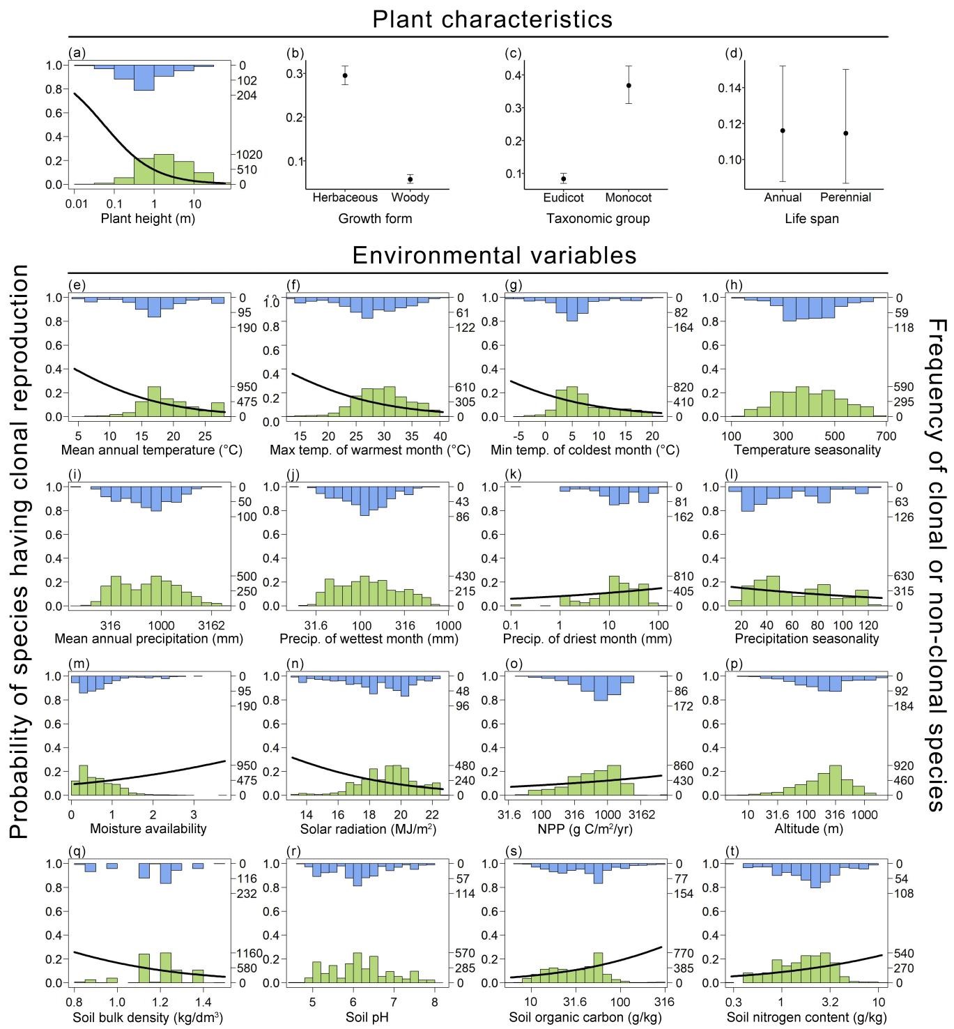 克隆植物的概率與植物性狀和環(huán)境變量之間的系統(tǒng)發(fā)育邏輯回歸關(guān)系