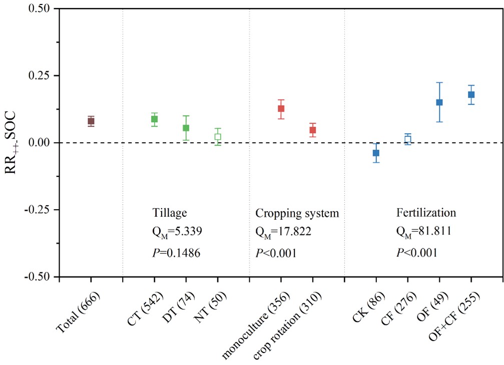 圖1. 土壤管理類型對有機碳含量影響的平均效應大小