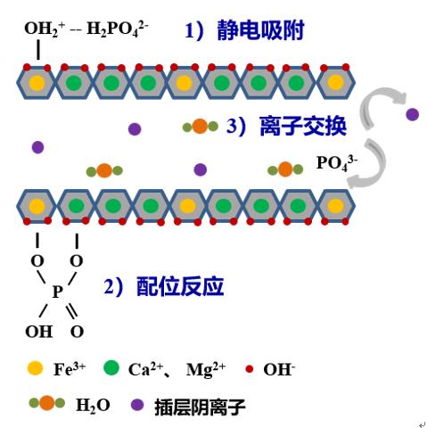 圖 4 鐵基層狀雙氫氧化物的除磷機制