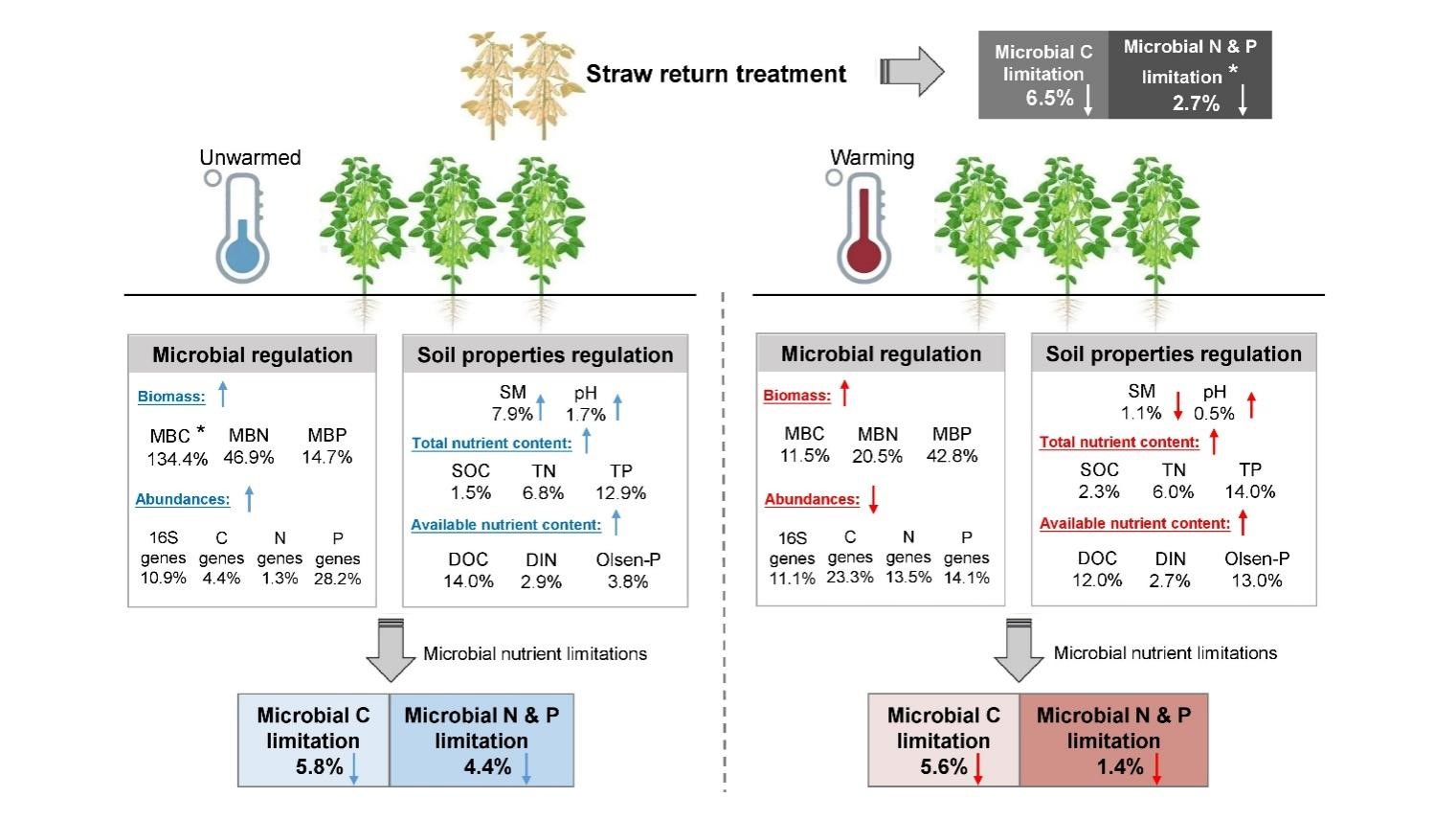東北地理所在增溫和秸稈還田耦合對(duì)黑土農(nóng)田土壤微生物養(yǎng)分限制的影響機(jī)制方面取得進(jìn)展