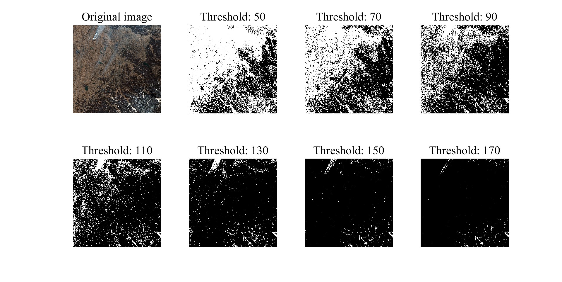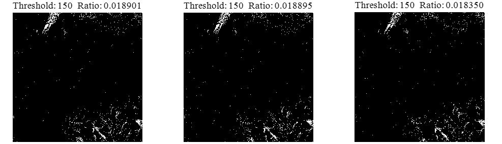 圖2 2020年11月11日的影像在不同閾值下的二值化分割結果